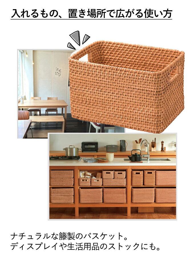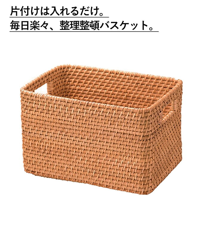 『籐 かご』 かご カゴ 籠 バスケット 小物入れ 小物収納 ハンドルバスケット 籐バスケット ラタンバスケット 収納ボックス 収納ケース 収納かご 収納カゴ 衣類収納 タオル入れ タオル収納 シンプル ナチュラル 北欧 可愛い かわいい おしゃれ 持ち手付き 角型 深型 洗面所