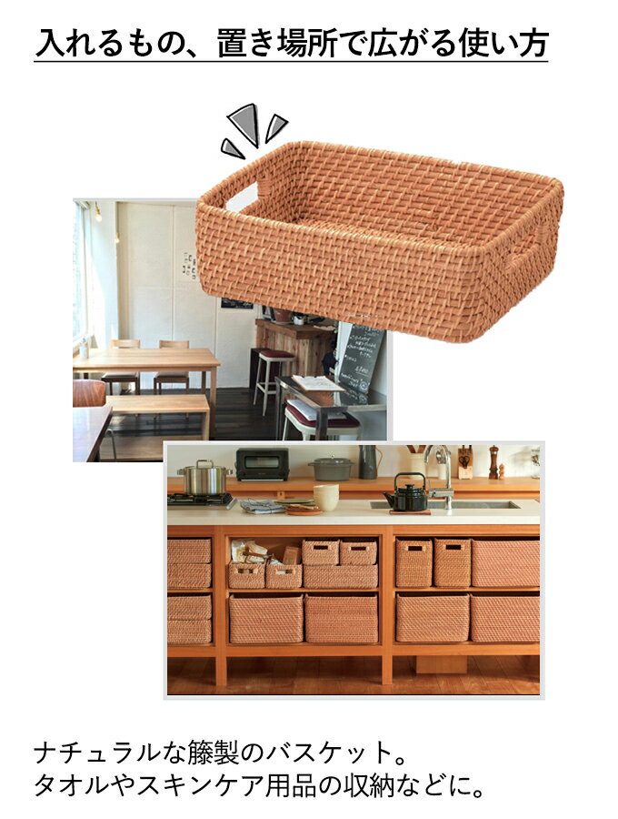 『籐 かご』 かご カゴ 籠 バスケット 小物入れ 小物収納 ハンドルバスケット 籐バスケット ラタンバスケット 収納ボックス 収納ケース 収納かご 収納カゴ 衣類収納 タオル入れ タオル収納 シンプル ナチュラル 北欧 可愛い かわいい おしゃれ 持ち手付き 角型 洗面所