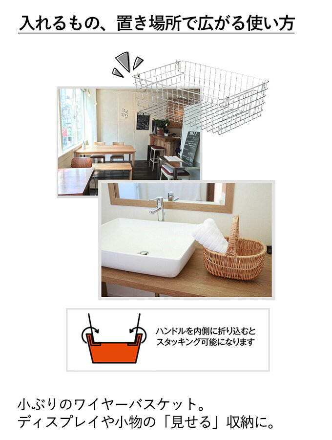 『ワイヤー バスケット』 バスケット かご 籠 カゴ 小物入れ 小物収納 収納カゴ 整理カゴ 収納バスケット 店舗什器 ワイヤーバスケット 衣類収納 収納ボックス ハンドルバスケット タオル入れ タオル収納 シンプル ナチュラル 北欧 おしゃれ アンティーク調 角型
