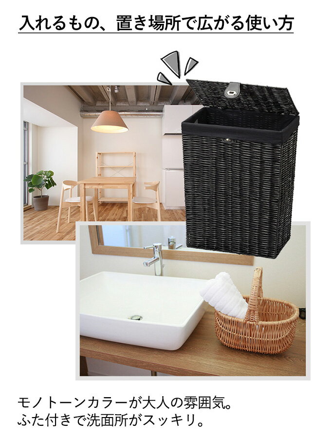ランドリーバスケットとして脱いだものを入れても、ふたで隠せるから洗面所の雰囲気を損ないません。