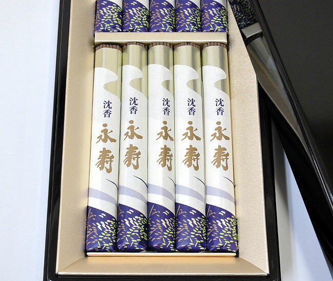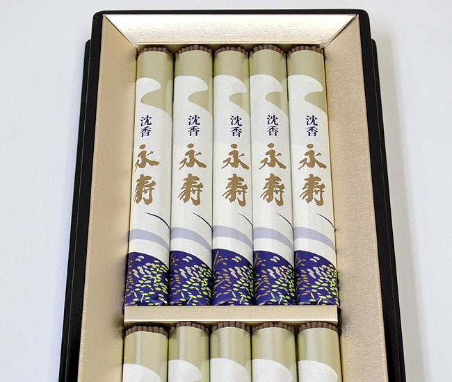 (燃焼時間約25分・煙りやや少ない) 沈香永寿ミニ 1,000円(税別・送料別) 沈香永寿 バラ詰 2,200円(税別・送料別) 沈香永寿 塗箱短寸10入 5,000円(税別・送料別) 永寿は、香りの特長により5種類に分類されます。