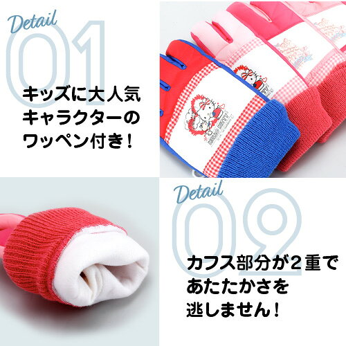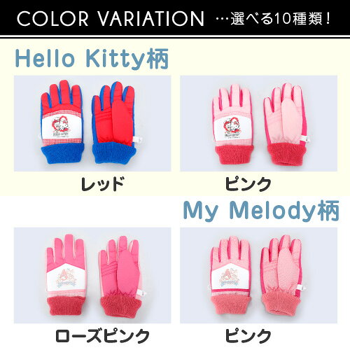 【Hello Kitty】【My Melody】ジュニア キャラクター手袋 スキータイプ 結束ホック付き<あったか手袋 子ども てぶくろ 防寒手袋 暖かい 冬小物 秋冬>